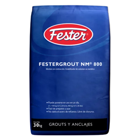 FESTERGROUT® NM 800 es un producto químico especializado, en polvo, libre de cloruros, base en cemento portland, agregados minerales y aditivos. Para todo tipo de necesidades de anclaje, fijación, relleno y basamento donde se requiere un grout con resistencia a la compresión de 800 kg/cm². Para sentar y nivelar todo tipo de maquinaria con poca o nula vibración.