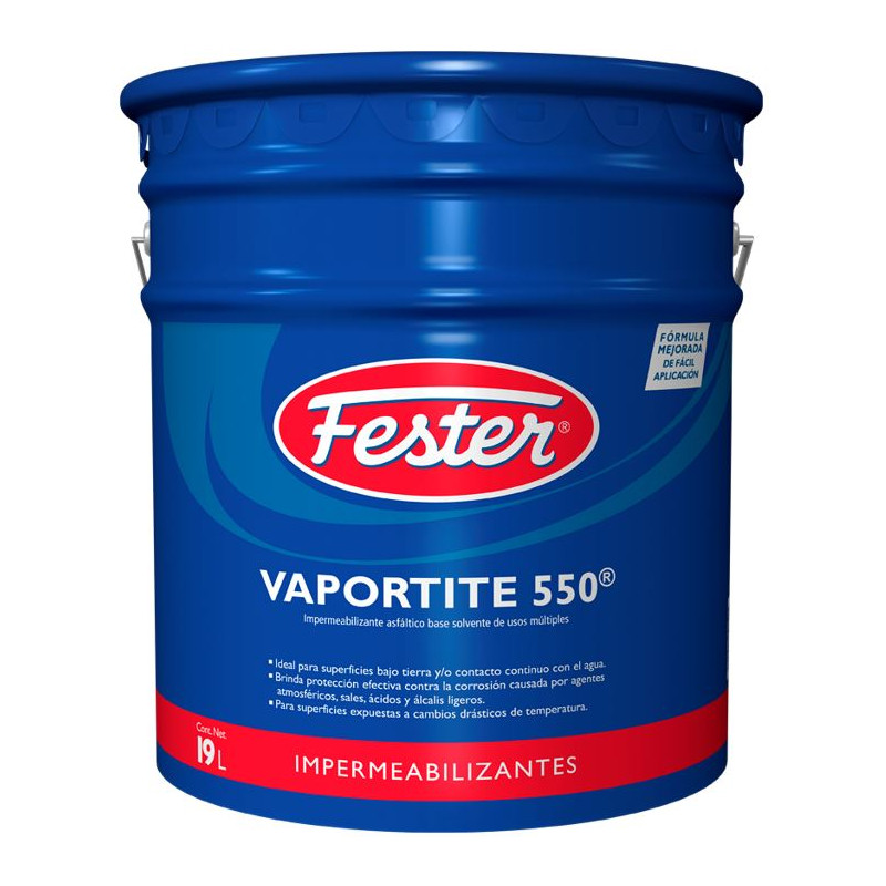 FESTER® VAPORTITE 550 impermeabilizante para techos, cimentaciones, charolas de baño, cuartos de lavado, jardineras, canalones para desagüe de techumbres, fuentes, espejos de agua, taludes o muros de contención, macetones, etc. Como protección anticorrosiva para tuberías enterradas o ductos de aire acondicionado.